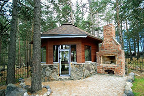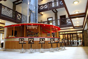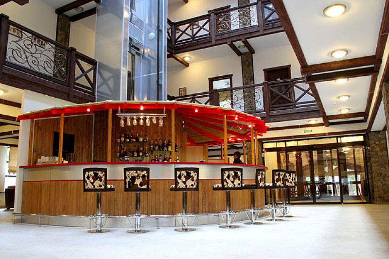 Это излюбленное место отдыха гостей. Панорамные окна, мягкие кресла, большой камин и фоновая музыка создают неповторимую атмосферу тепла и уюта. Вы можете насладиться величественным пейзажем леса и кавказских гор с бокалом любимого напитка из винной карты бара.