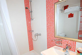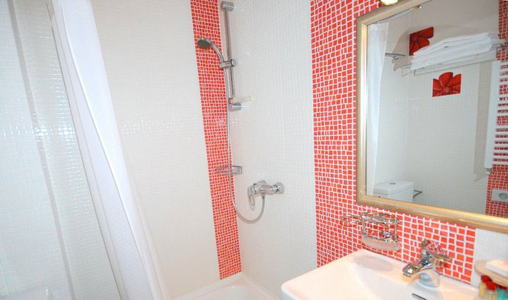 душ, раковина, санузел, фен, фирменные наборы гостевых принадлежностей, наборы полотенец.